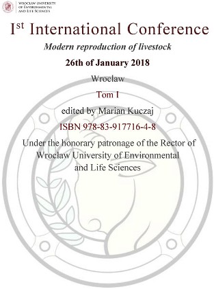 First International Conference Modern reproduction of livestock, 26th of January 2018, Wroclaw, Tom I, edited by Marian Kuczaj, ISBN 978-83-917716-4-8.
