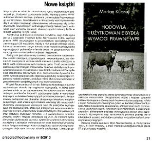 - Kuczaj M. (2013). Hodowla i użytkowanie bydła Wymogi prawne WPR. Wyd. Marian Kuczaj, ss. 500. Nr ISBN 978-83-917716-2-4.